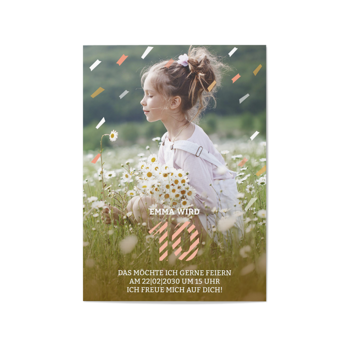 Einladungskarte Kindergeburtstag Konfettiregen 10 Rosa