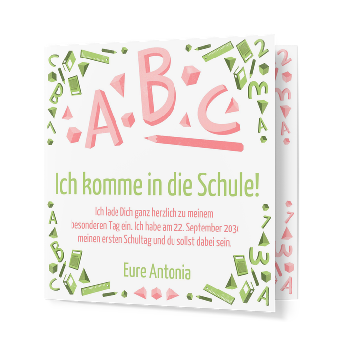 Einladungskarte Einschulung ABC in Rot und Grün