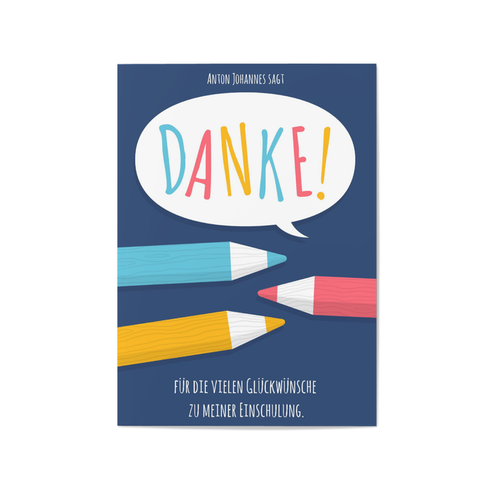 Der 1. Schultag war aufregend und spannend! Mit der Dankeskarte Bunte Stifte in Blau bedanken Sie sich bei allen Familienmitgliedern und Freunden, die diesen Tag mit Ihrem Kind gefeiert haben. Mit den lustigsten Bildern des Tages wird daraus eine schöne Erinnerung für alle.