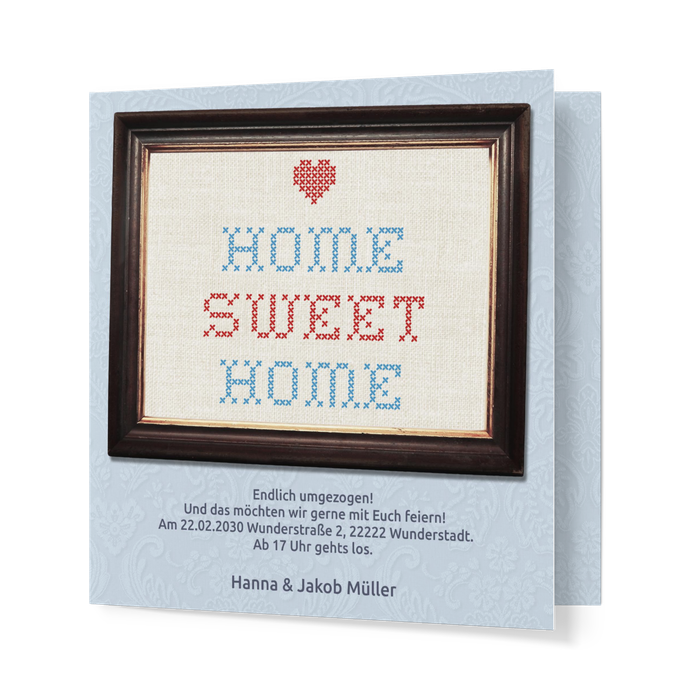 Der Einzug ist glatt über die Bühne gegangen, die Tapete klebt und Ihre Freunde sind schon ganz neugierig? Dann laden Sie alle mit dieser blauen Karte zu Ihrer Einweihungsparty ein.