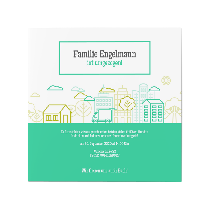Einladungskarte Einweihungsparty Konturstadt in Grün