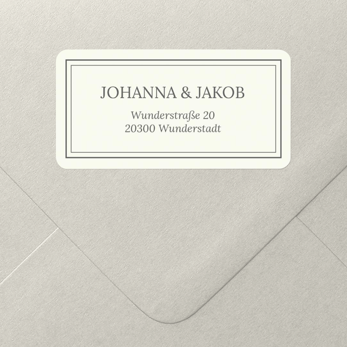 Der Adressaufkleber in elegantem Beige für Ihre Einladung zur Hochzeit mit einem kursiven Schriftzug für Ihre Adresse.