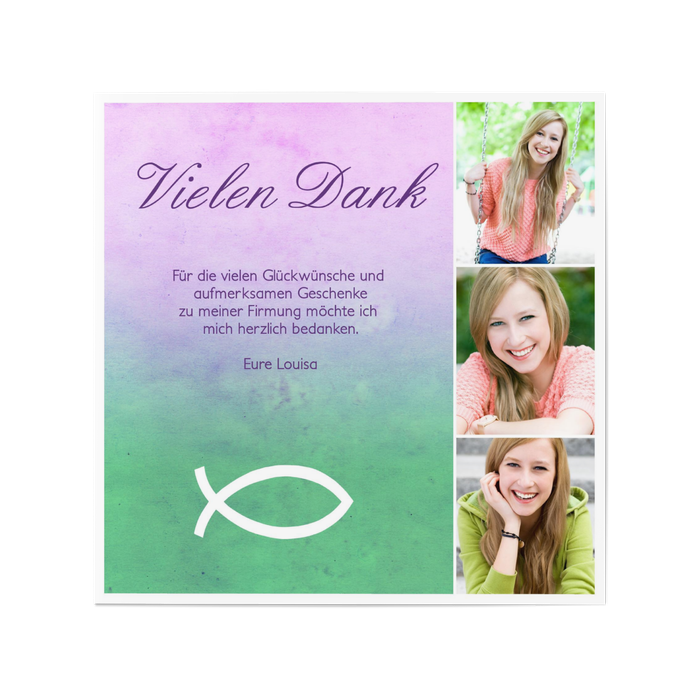Dankeskarte Firmung Ziervolle Ichthys in Grün