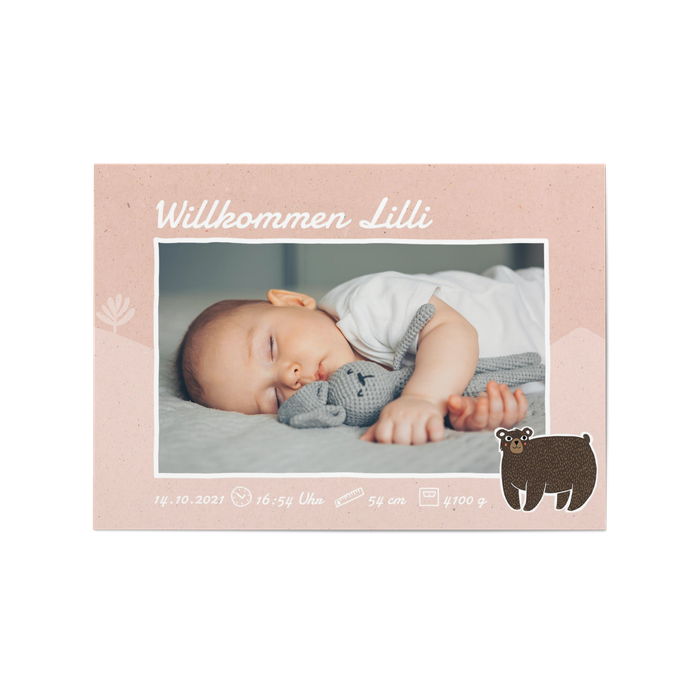 Geburtskarte Niedliche Tierlandschaft Rosé