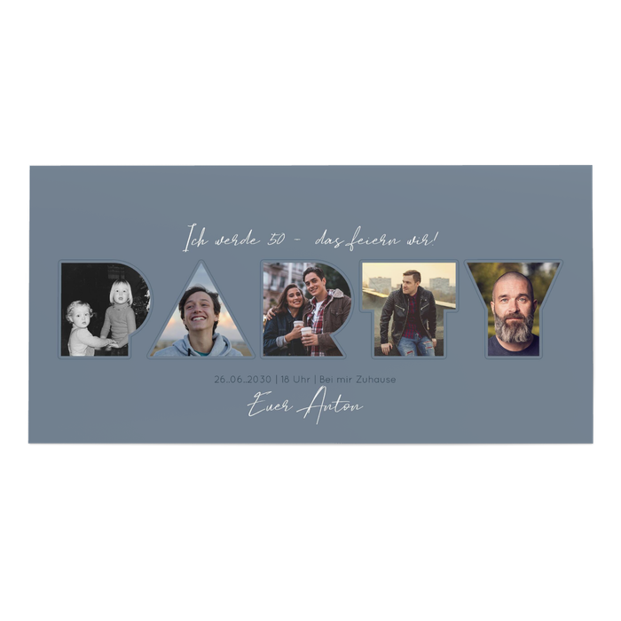 PARTY-Zeit! Gestalten Sie Ihre Geburtstagseinladung mit anpassbaren Party Buchstaben. Zeigen Sie Ihre Persönlichkeit und laden Sie zu einer unvergesslichen Feier ein.