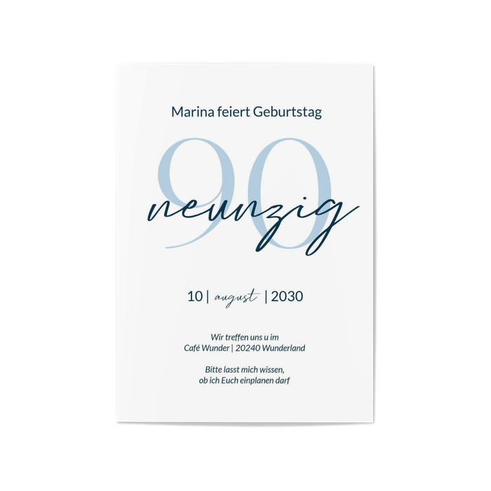 Einladungskarte 90. Geburtstag Elegante Jubiläumszahl