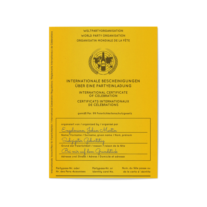Einladungskarte 70. Geburtstag Weltpartyorganisation 70