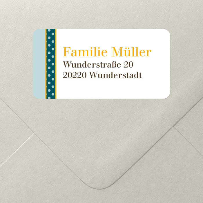 Der Adressaufkleber zu Ihrer Dankeskarte mit Geschenkband in Blau. Kunstvoll am linken Rand angeordnet, wird dieser Adressaufkleber zur schlichten Verschönerung Ihrer Dankeskarte.