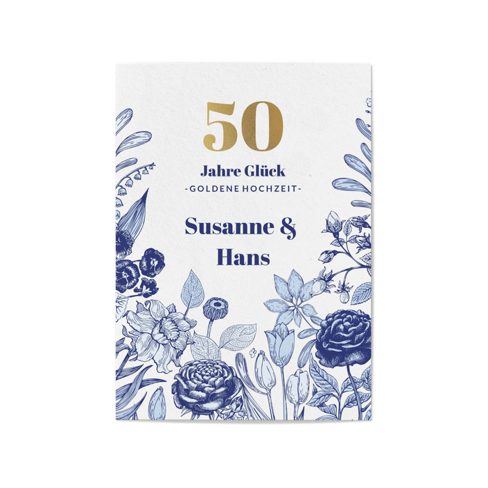 Einladungskarte Goldenen Hochzeit Blaue Blumen