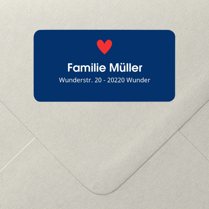 Bringen Sie bereits von außen Ihre Post mit dem wunderschönen dunkelblauen Adressaufkleber, versehen mit einem roten Herz zum Glänzen. Der dunkelblaue Aufkleber passt perfekt zum signalisieren Ihres neuen Nachwuchses in der Familie.