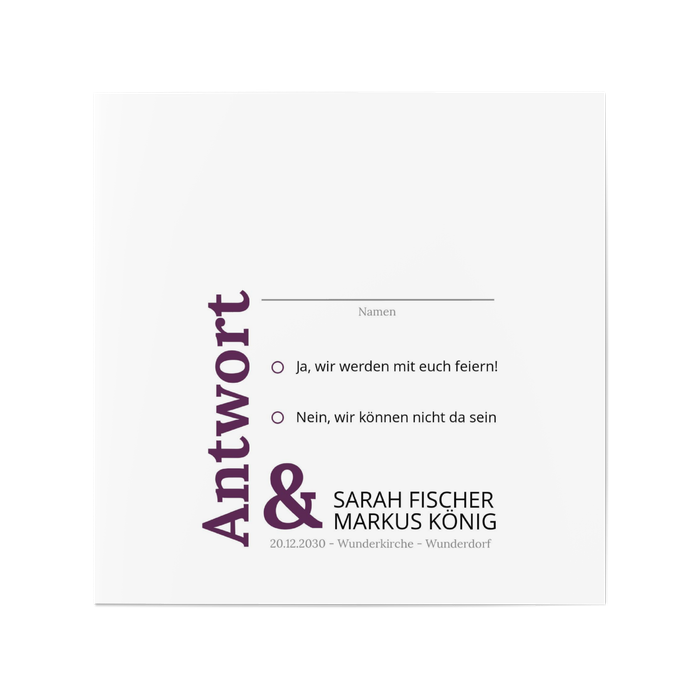 Antwortkarte Hochzeit Auf weißem Grund in Pflaume