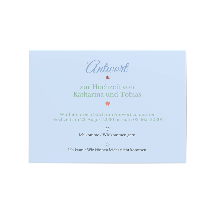 Antwortkarte Hochzeit Blümchenkranz - Taubenblau
