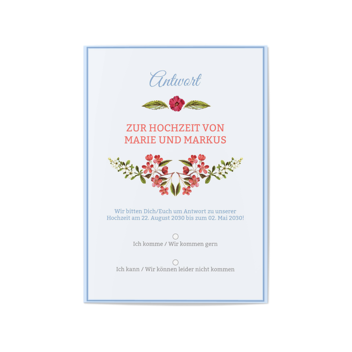 Antwortkarte Hochzeit Hochzeitsblumen - Taubenblau