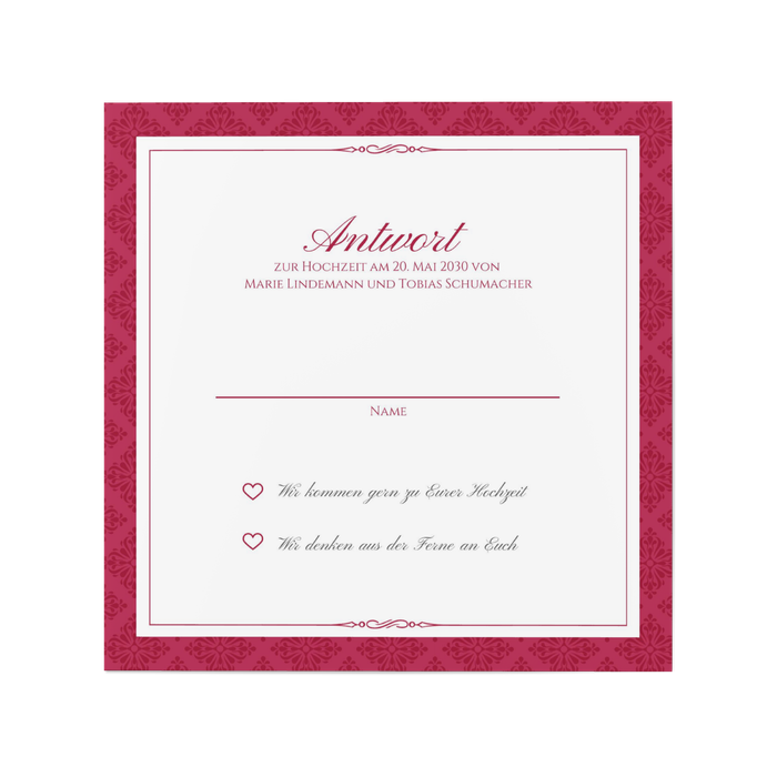 Antwortkarte Hochzeit Vintagemuster in Pink