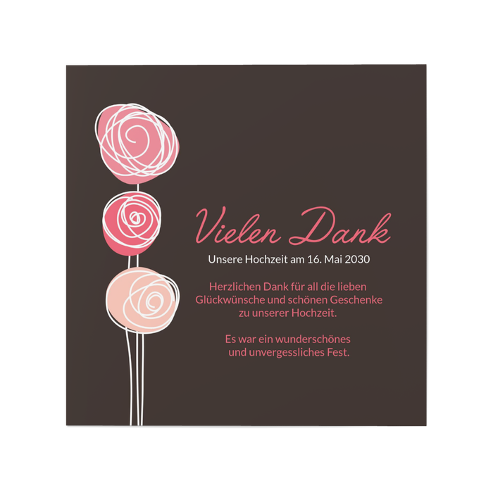 Dankeskarte Hochzeit Hochzeitsröschen in Braun