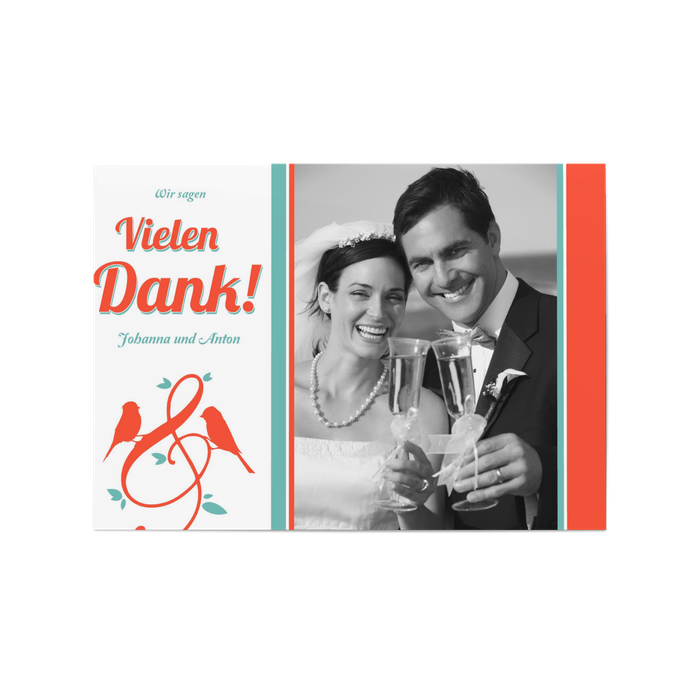 Dankeskarte Hochzeit Hochzeitsvögelchen in Orange
