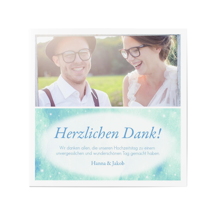 Dankeskarte Hochzeit Leuchtende Sterne in Blau