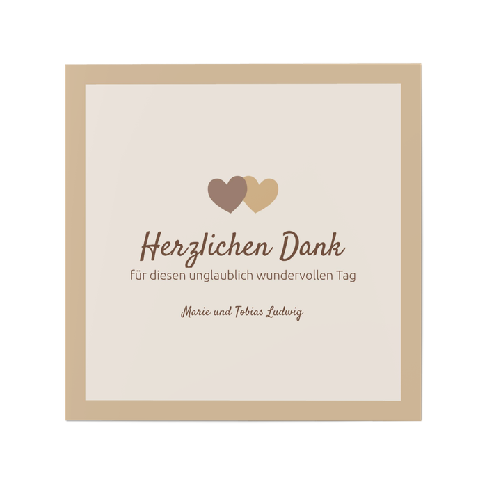 Dankeskarte Hochzeit Verliebte Herzen in Braun