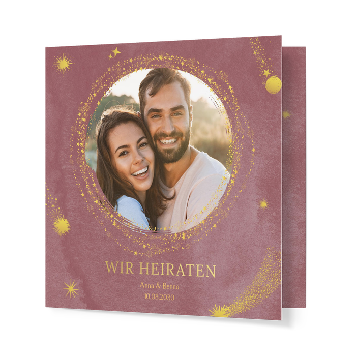 Einladungskarte Hochzeit Sternschnuppen Rose