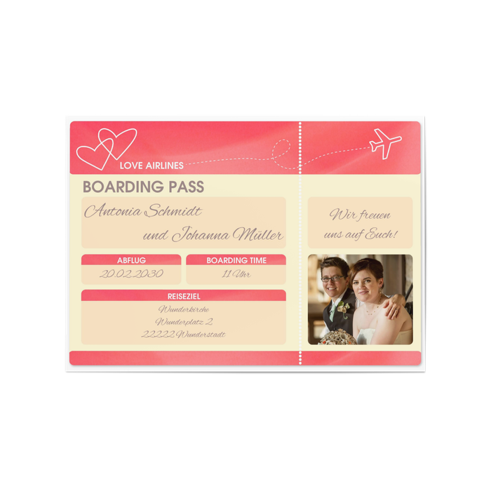 Einladungskarte gleichgeschlechtliche Hochzeit Flugticket