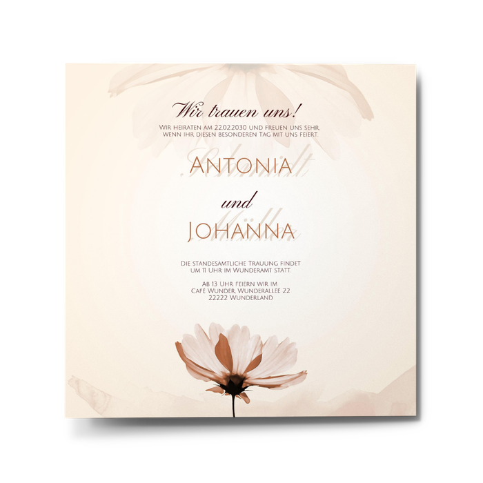 Einladungskarte gleichgeschlechtliche Hochzeit Zarte Blumen in Braun