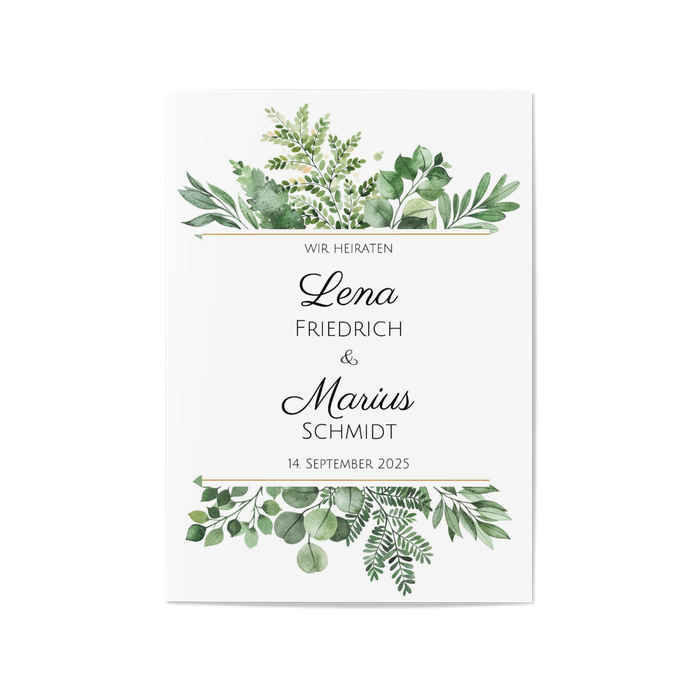 Einladungskarte Hochzeit Grüne Blätter Wasserfarben