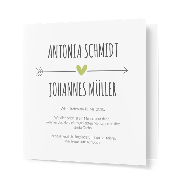 Einladungskarte Hochzeit Liebespfeil in Grün