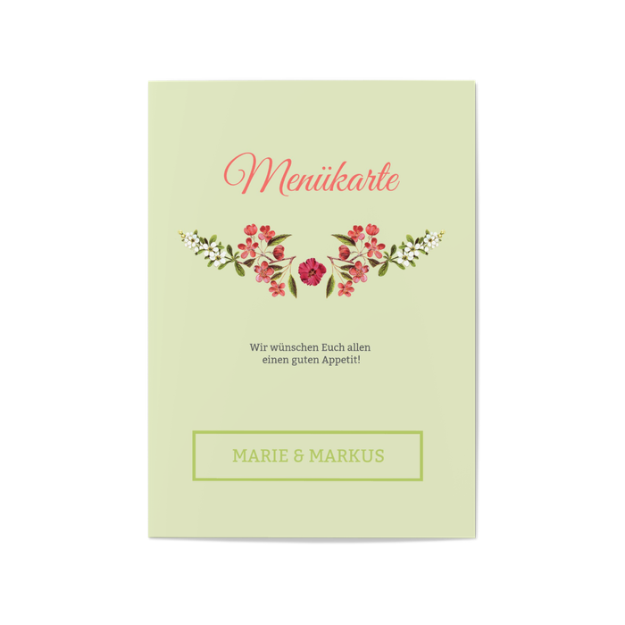 Menükarte Hochzeit Hochzeitsblumen - Grün