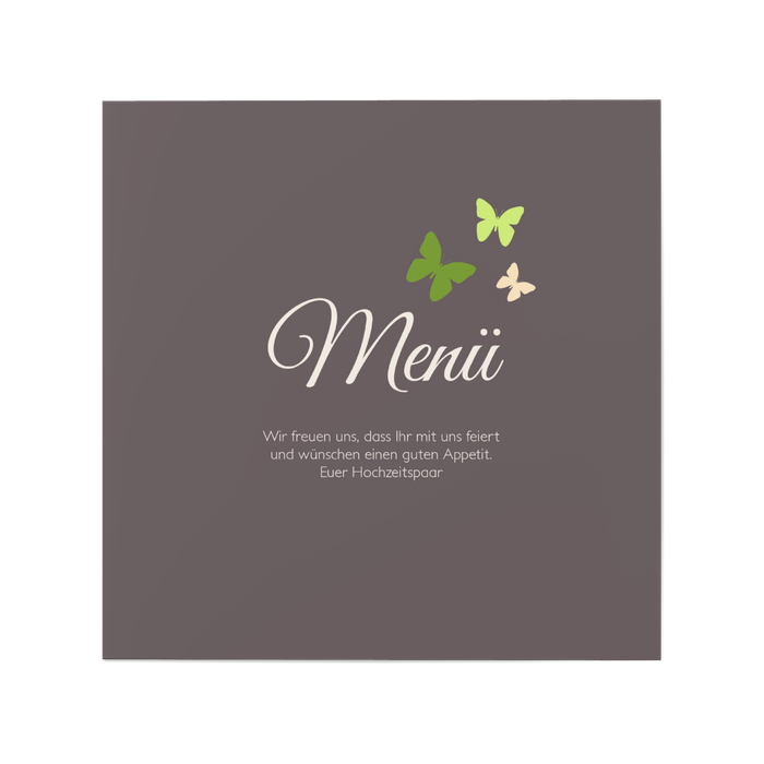 Menükarte Hochzeit Schmetterlinge in Grün