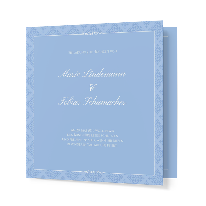 Einladungskarte Hochzeit Vintagemuster in Blau