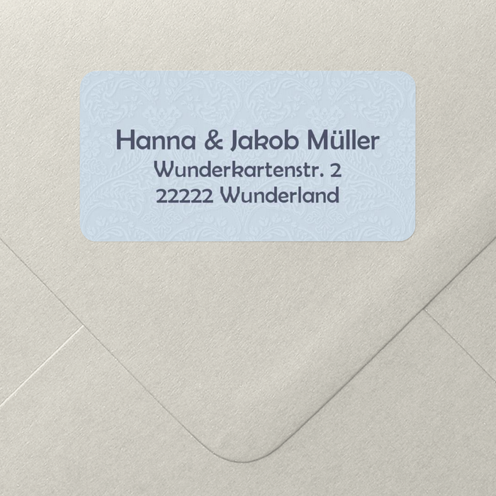 Ihr Einzug ist vollbracht, doch niemand weiß Ihre neue Adresse? Mit dem blauen Adressaufkleber im Tapetendesign teilen Sie diese all Ihren Freunden und Familie mit und laden Sie gleichzeitig zu Ihrer Einweihungsparty ein.