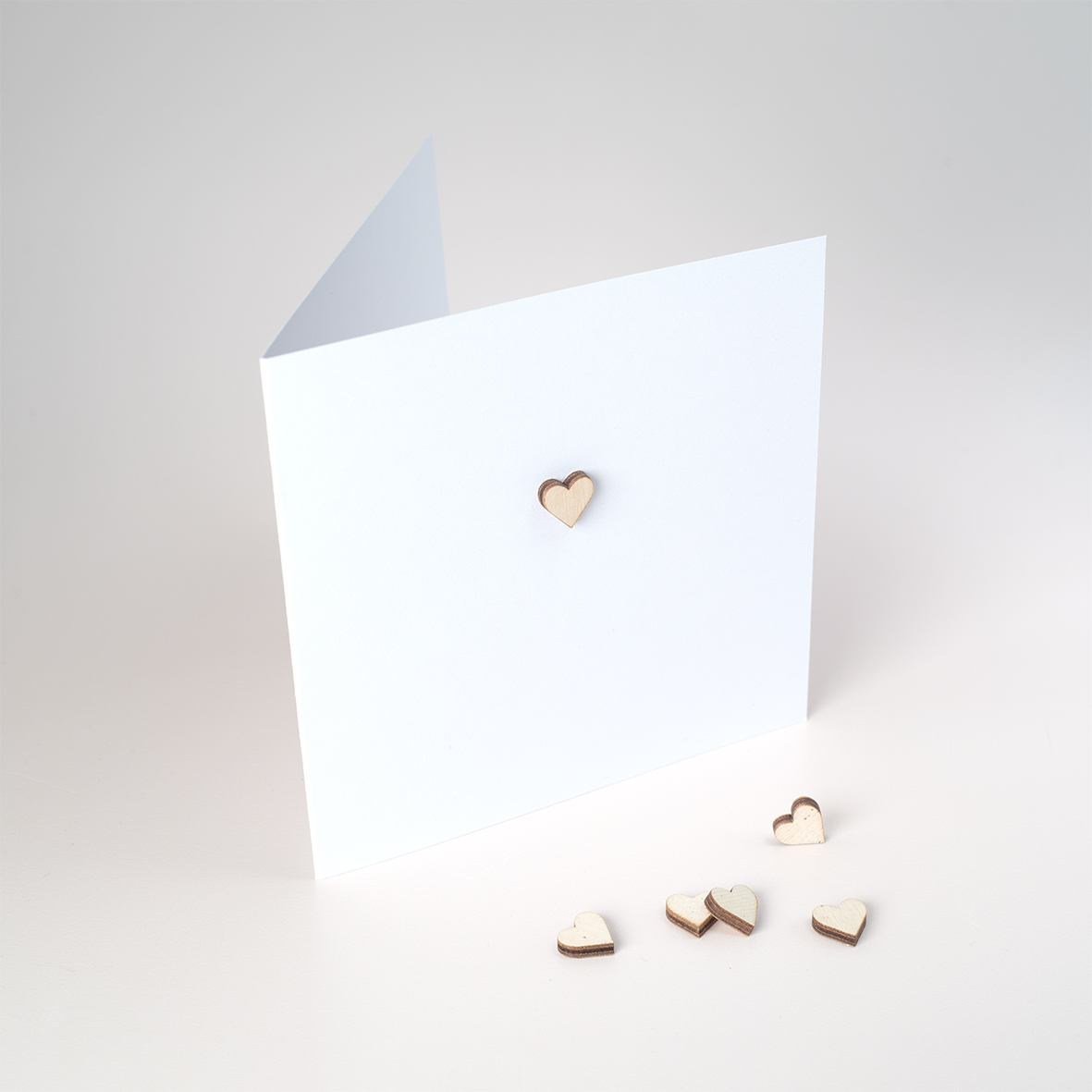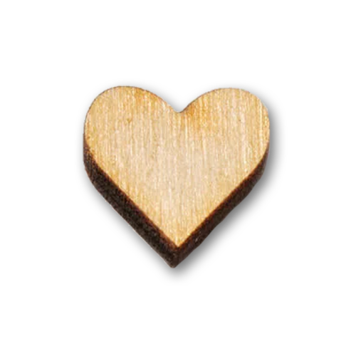 Houten hartjes met plakstrip (25 stuks). Formaat: 1 cm (breedte) x 0,5 cm (dikte).