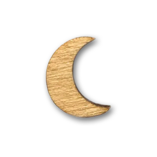 Houten maantjes met plakstrip (25 stuks). Formaat: 1,2 cm (lengte) x 0,5 cm (dikte).