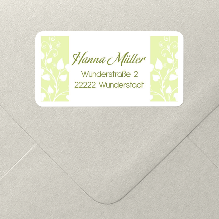 Der zeitlos-stilvolle Adressaufkleber mit Efeu und Rankenmuster an den Seiten. Aufgrund des extravaganten Designs der Ranken eignet sich der Aufkleber neben dem privaten auch für den geschäftlichen Bereich. Neben der Farbe Grün ist der Adressaufkleber dabei auch in Apricot und Eisblau verfügbar.