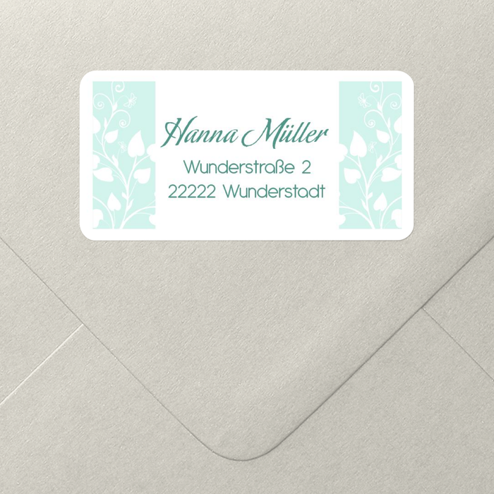 Der edle Adressaufkleber mit Efeu in Eisblau und individualisierbarem Erscheinungsbild. Durch die Efeuranken an den Seiten des Aufklebers bekommt dieser eine besonders stilvolle Erscheinung und eignet sich perfekt für Glückwunsch-, und Einladungskarten. Neben eisblau ist der Aufkleber ach in grün und apricot verfügbar.