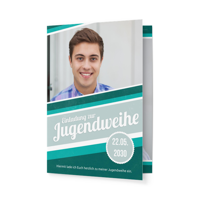 Einladungskarten Jugendweihe 'Retrostreifen'
