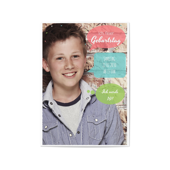 Einladungskarte Kindergeburtstag Sprechblasen - Farbenfroh