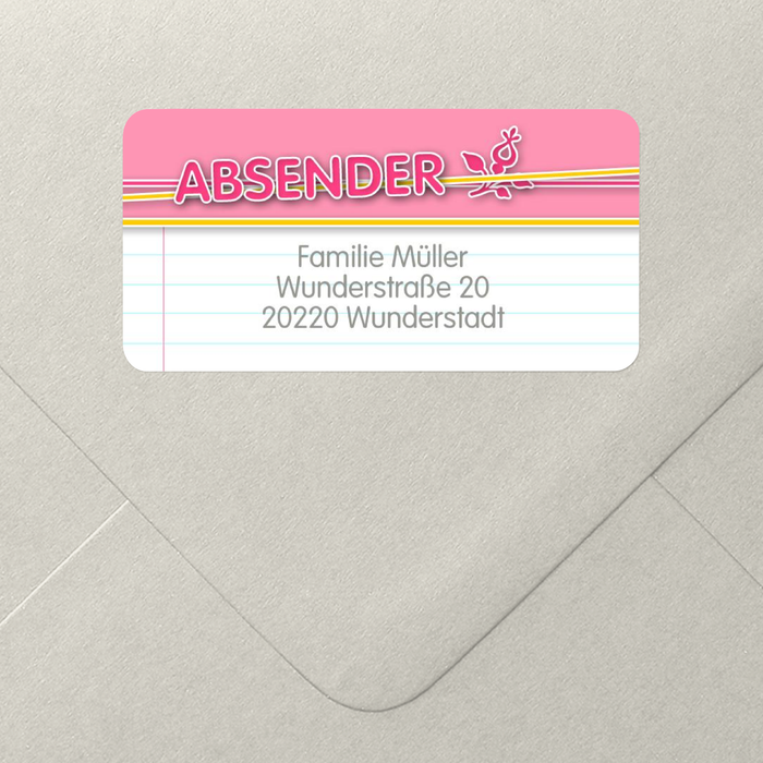 Eine kleine Blume in Pink. Für diesen Adressaufkleber sollten SIe sih entscheiden, wenn Sie eine ganz besondere Dankeskarte verschicken möchten.