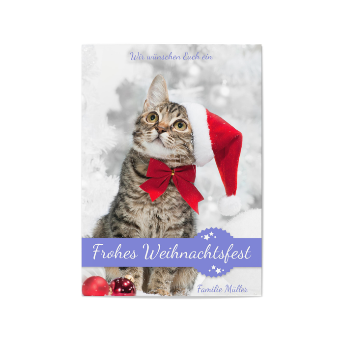 Tierische Weihnachtskarte Kleine Weihnachtskatze in Lila