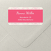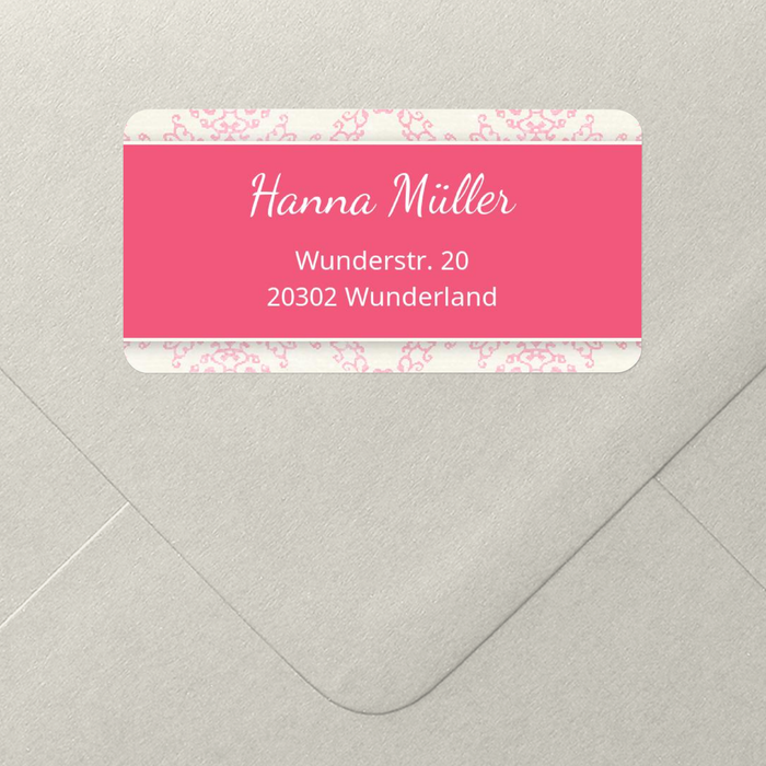 Zahlreiche Aufkleber mit den Adressdaten sind ein hilfreiches Hilfsmittel bei der Vorbereitung der Einladungspost zur Kommunion und Konfirmation. Dieser Adressaufkleber ist in einem kräftigen Pink gehalten und mit einer kleinen floralen Banderole umrahmt. Sie haben genügend Raum für alle Daten.