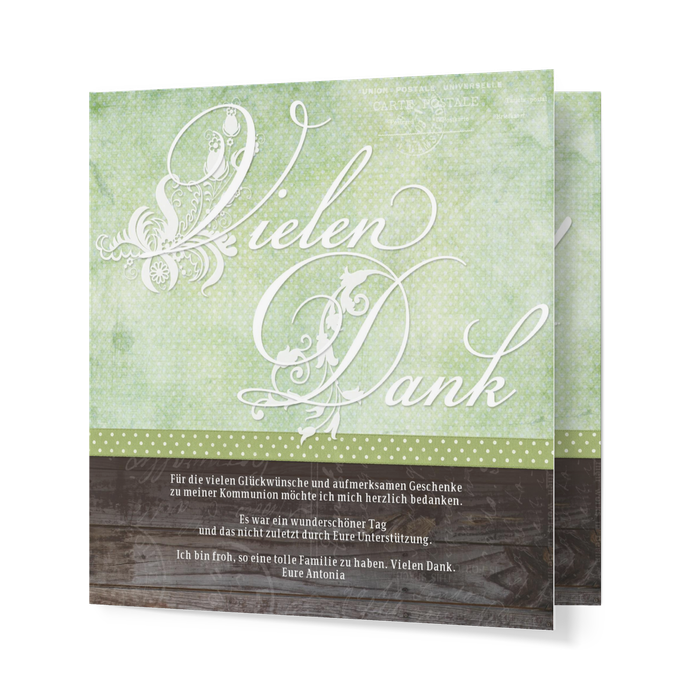 Die Kommunion war wirklich ein ganz besonderer Tag in Ihrem Leben? Dann muss nun auch eine ganz besondere Dankeskarte her. Schließlich wollen Sie allen zeigen, wie schön die Feier für Sie war. Niemand soll das je vergessen! Diese wunderbare Karte macht es möglich.