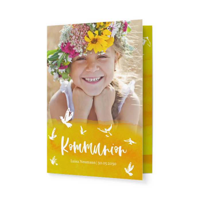 Einladungskarte Kommunion Weißes Täubchen Orange