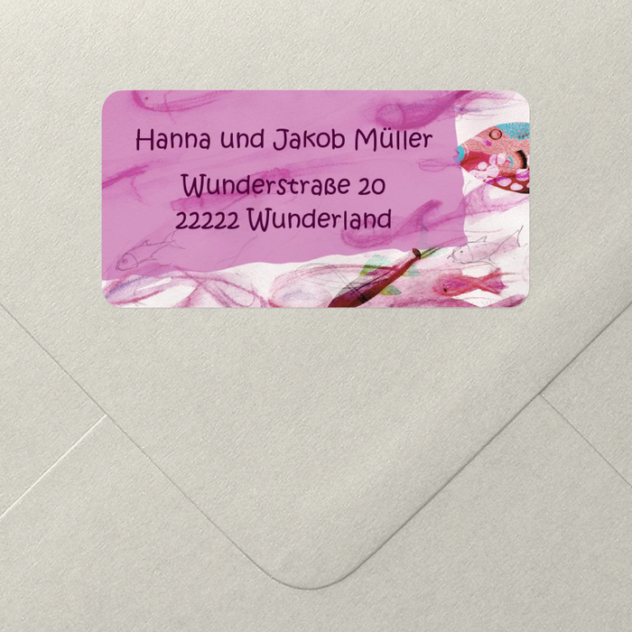 Der Adressaufkleber Fische in Pink wird nicht nur Ihre Tochter begeistern. Versenden Sie die Einladungen zur 1. Heiligen Kommunion Ihres Kindes mit diesem farbenfrohen Aufkleber. So freuen sich alle mit Ihrer Tochter auf das große Ereignis. Der Aufkleber ist die passende Ergänzung zur Einladungskarte Fische in Pink.