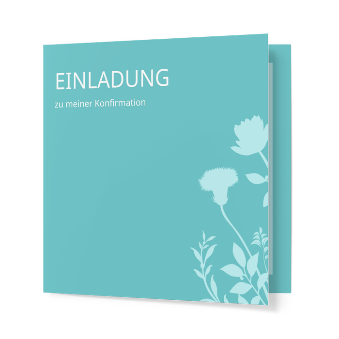 Einladungskarte Konfirmation Blumenzierde in Blau