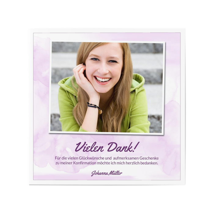 Danksagungskarte Konfirmation Aquarell in Lila