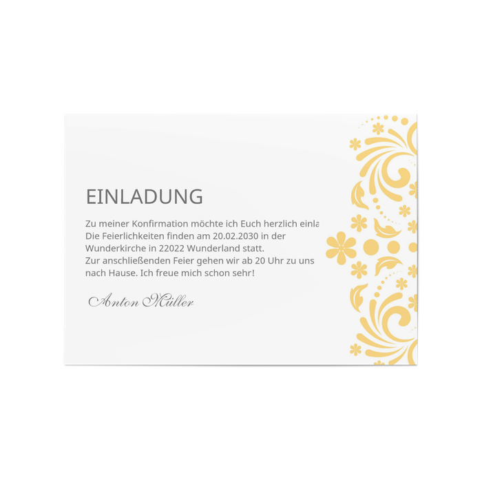 https://www.wunderkarten.de/product/konfirmation-elegante-einladung-gelb.html45527Elegante Einladung in Gelbhttps://d3e08pnjer9hg6.cloudfront.net/live/cards/thumbs/thumb_text_200_konfirmation-elegante-einladung-gelb.png0.99EURInStockEinladung Konfirmation/Konfirmationskarten/0.99Einladung Bekanntgabe Konfirmation2013-12-13