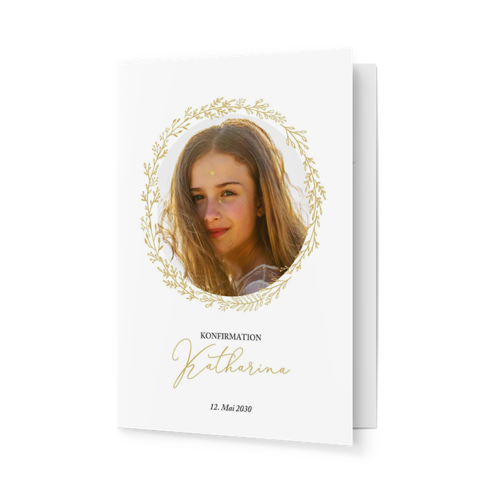 Einladungskarte Konfirmation Goldener Blätterkranz