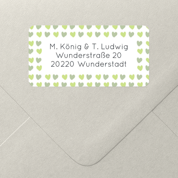 Kleine Herzchen in frischen Grüntönen begrüßen den Empfänger Ihrer Post und umrahmen Ihren Namen und die Anschrift. Dieser Adressaufkleber passt nicht nur perfekt zu der Karte „Mein Herzchen“.