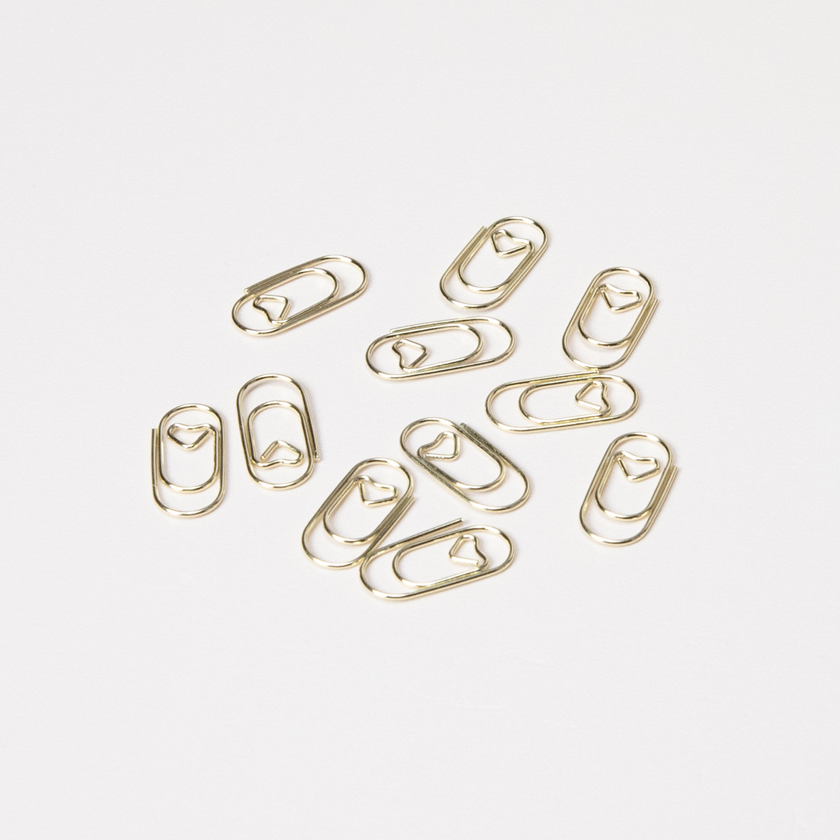Gouden mini paperclips met hartje (25 stuks). Formaat: 0,9 cm (breedte) x 2 cm (lengte).