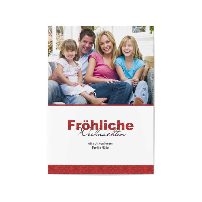 Über eine individuell gestaltete Weihnachtskarte freuen sich Oma und Opa besonders. Setzen Sie ein Lieblingsbild Ihrer Familie in die Weihnachtskarte mit den zarten Ornamenten ein und verschicken Weihnachtsgrüße mit der gewünschten Schriftart und Farbe. Mit dieser fröhlichen Weihnachtskarte überraschen Sie die Empfänger garantiert.